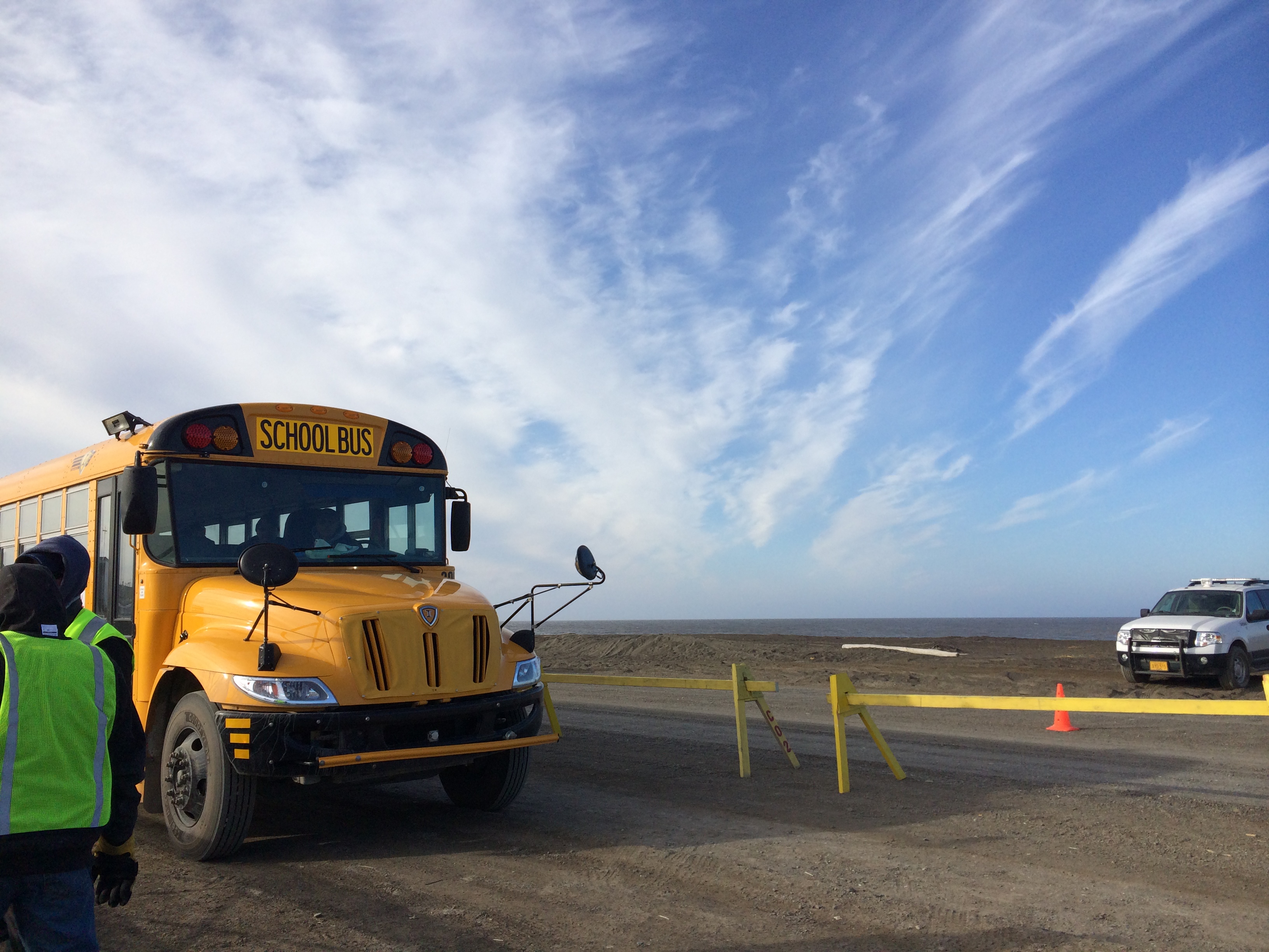 A chilly lagoon borders the field on one side. On the other, the Arctic Ocean.