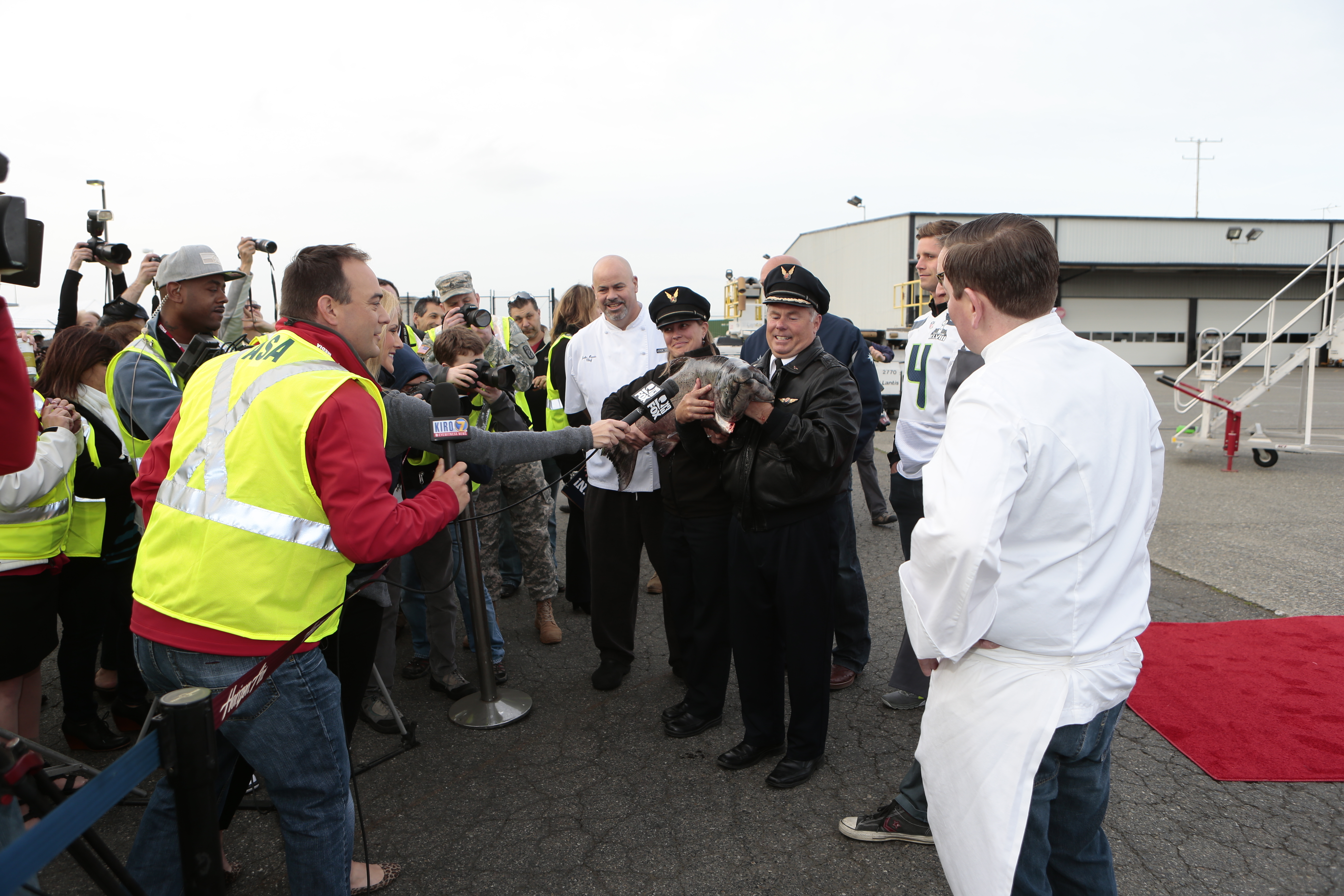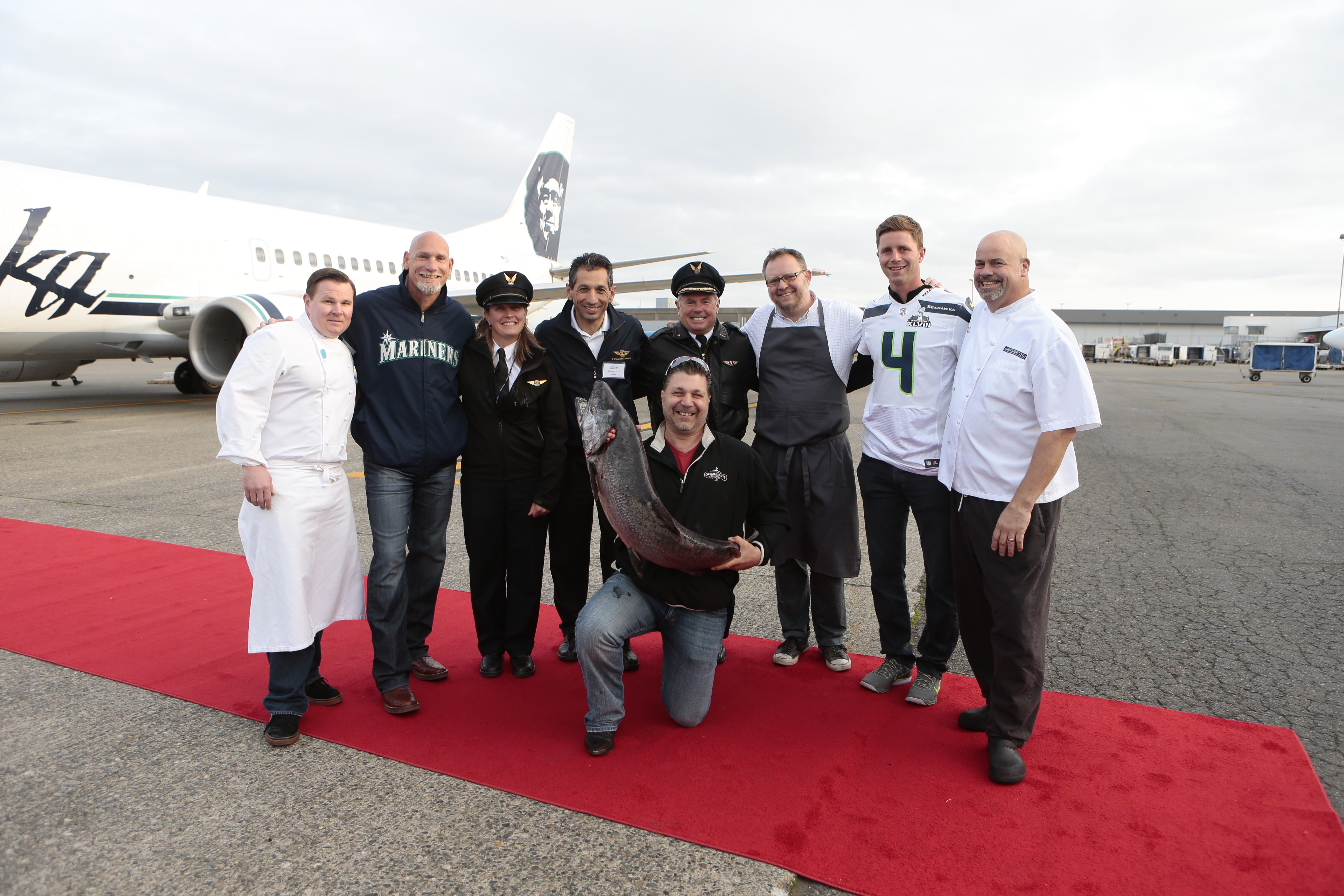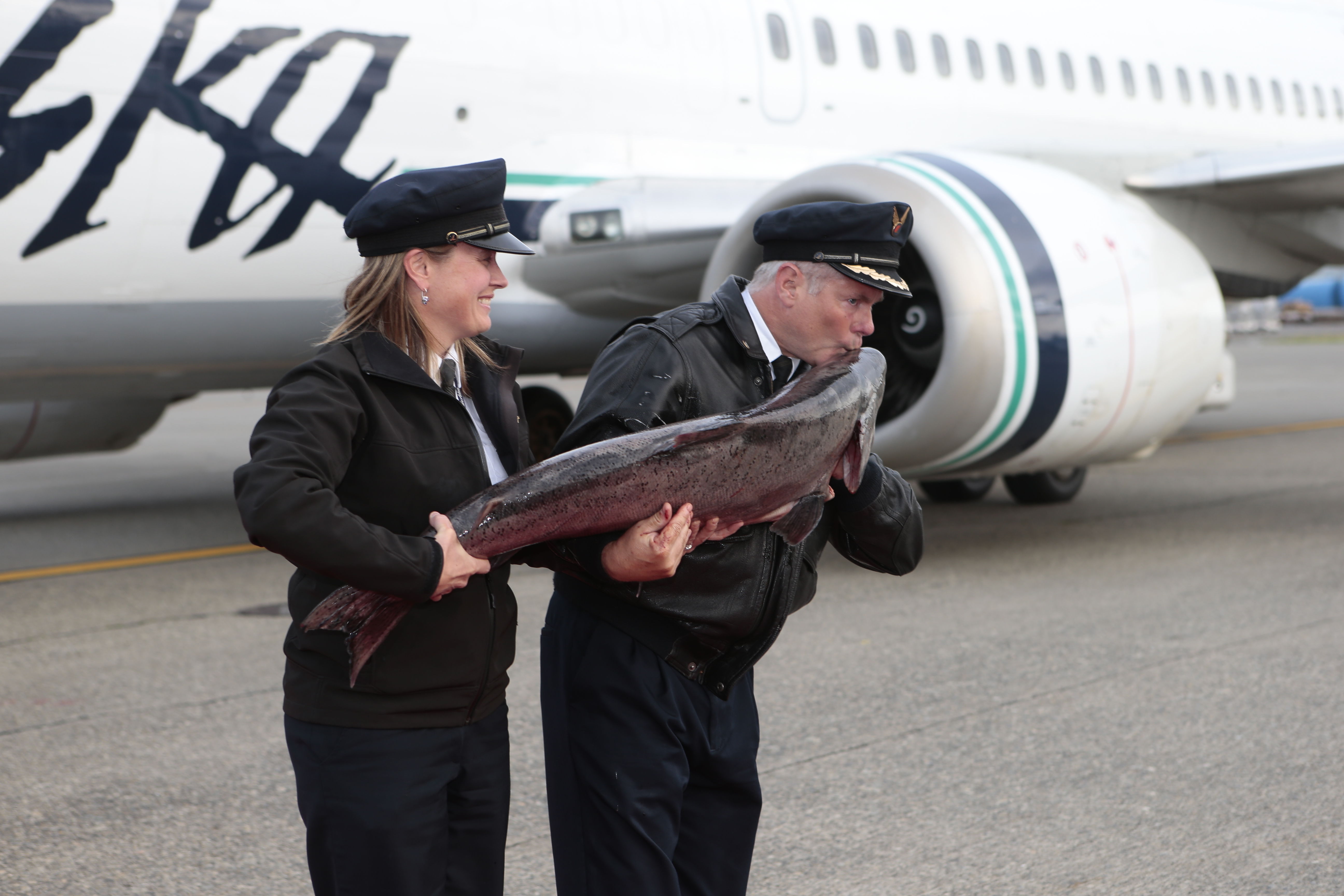 Alaska Captain David Boshell and First Officer Melissa Van Dyke, flew the fish in from Cordova. The flight was greeted at Sea-Tac by 10 Alaska Airlines Mileage Plan MVP Gold members and representatives from USO Northwest, U.S. Marines and U.S. Coast Guard, along with more than 20 Air Group employees.