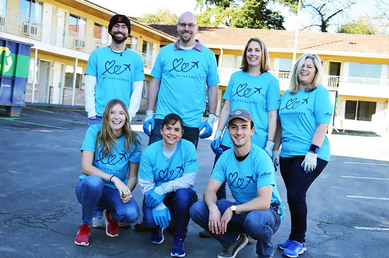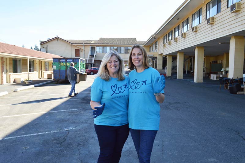 Earlier this spring, Alaska teamed up with a group of volunteers from Habitat for Humanity to clear out each room of the former Sandstone Inn in SeaTac, across the street from Alaska’s Corporate Headquarters, to get it ready for the construction of the new office building.