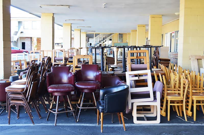 Over two days, Alaska and Habitat volunteers emptied more than 120 guest rooms, the restaurant, lounge, laundry room, lobby and several offices — enough to fill two semi-trucks, plus a box truck, full of furniture.