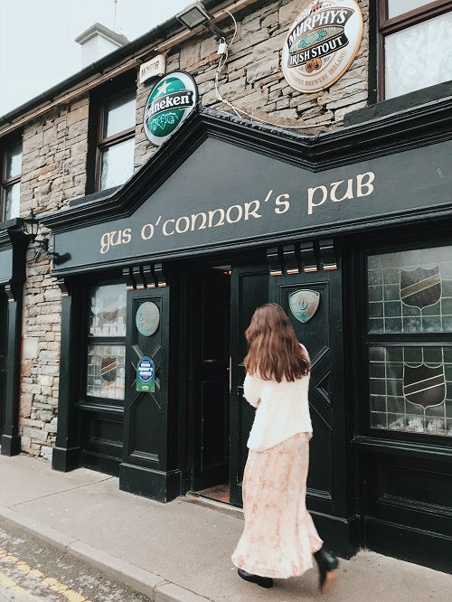 After about a three-hour drive from Dublin, we stopped to explore a little town called Doolin. It’s very small with some cute cottages and only a few pubs. We had a Guinness (loved it in Ireland!), chowder, and fish and chips by the fire at Gus O’Connor’s Pub. We were content.