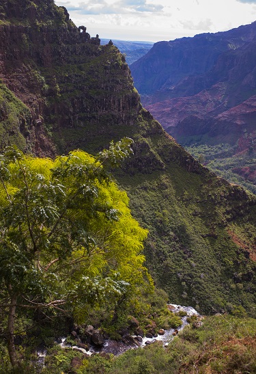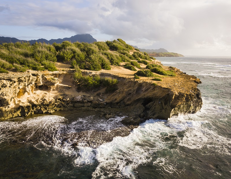 The crown jewel in Kauai’s natural offerings, Waimea Canyon is often called the Grand Canyon of the Pacific. There is an astonishing similarity in the red earth and the deep crevasses carved by the Waimea River. Waimea Canyon is less extensive, but also more green and lush. There are official scenic outlooks all over the park, with some incredible views into the canyon as well as the Kalalau Valley and the edge of the Napali Coast. You can venture into the canyon itself on numerous hiking trails at various difficulty levels, one of which deposits you on top of the 800-foot tall Waipoo Falls.