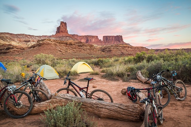 One-hundred miles of sandstone pedaling, with an elevational range from 4,000-6,000 feet, can be a lot. For those looking to make the trek a little less arduous, companies like Western Spirit Cycling are ready with guides, a sag wagon, and nightly camps where you relax with your favorite beverage while the guides cook. You might find grilled salmon with pesto pasta, spinach walnut lasagna, or even Indian curry chicken and vegetables on your dinner plate.