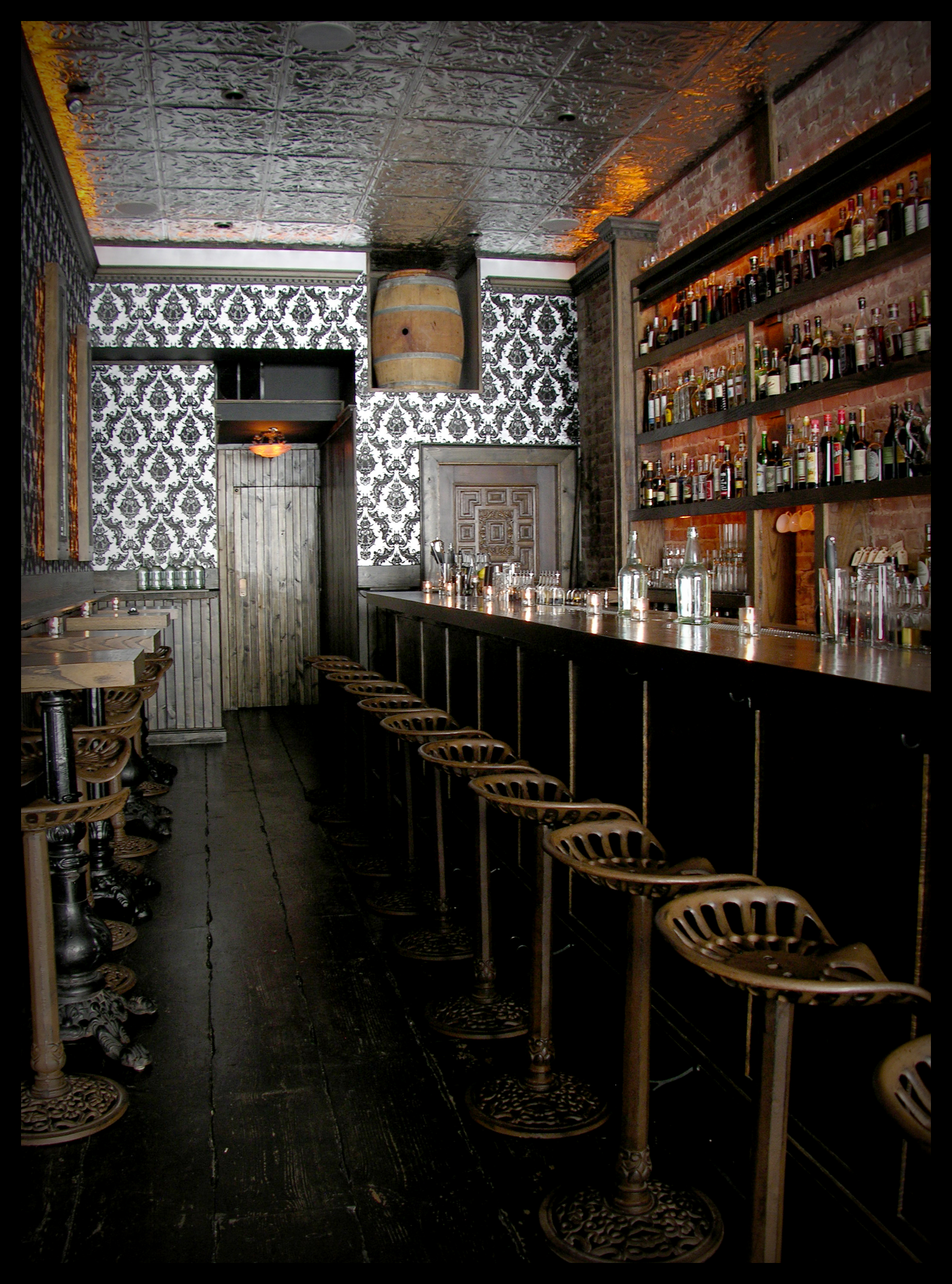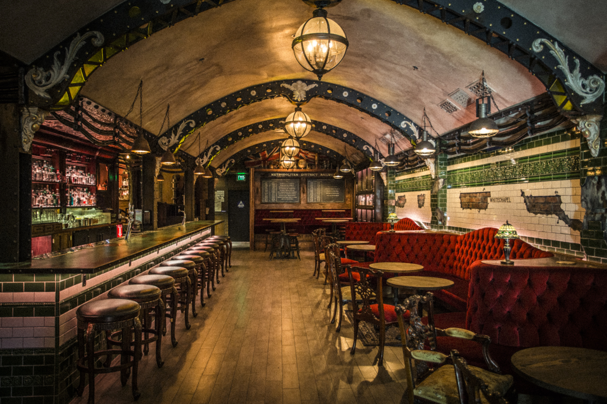 It’s all about the gin at this Whitechapel-tube-themed bar. Beyond the instant appeal of the impressive interior — which is lined with underground tile and decorated with exquisite British paraphernalia — this is one of the only places where you will find on select nights a kind of gin sommelier. A passionate expert named Keli Rivers will guide you through the range of many, many gins, including a selection of gin flights on the menu. The expansive cocktail menu spans 14 pages, tempting with unusual, but well balanced concoctions, including a selection of six riffs on a gin and tonic, 22 variations on a martini, modern favorites like the frothy Ramos Gin Fizz, and fun originals like the Von Dutch cocktail, made from gin (of course), genever, cinnamon shrub, apple juice, black pepper bitters and lemon.
