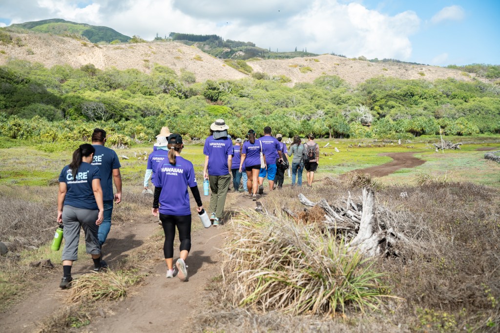 For Hawaiian Airlines’ inaugural Week of CARE in the Hawaiʻi Region, Team Kōkua supported Hawaiʻi Land Trust, an organization dedicated to acquiring lands in Hawaiʻi for perpetual preservation. Rooted in mālama ʻāina, each site offered a unique perspective on land management from fishpond restoration to coastal management and beyond. Each site had different activities that allowed us to give back to the land what it continues to provide to us both physically and mentally. It was an excellent byproduct to find opportunity to connect colleagues both old and new through working alongside one another.”